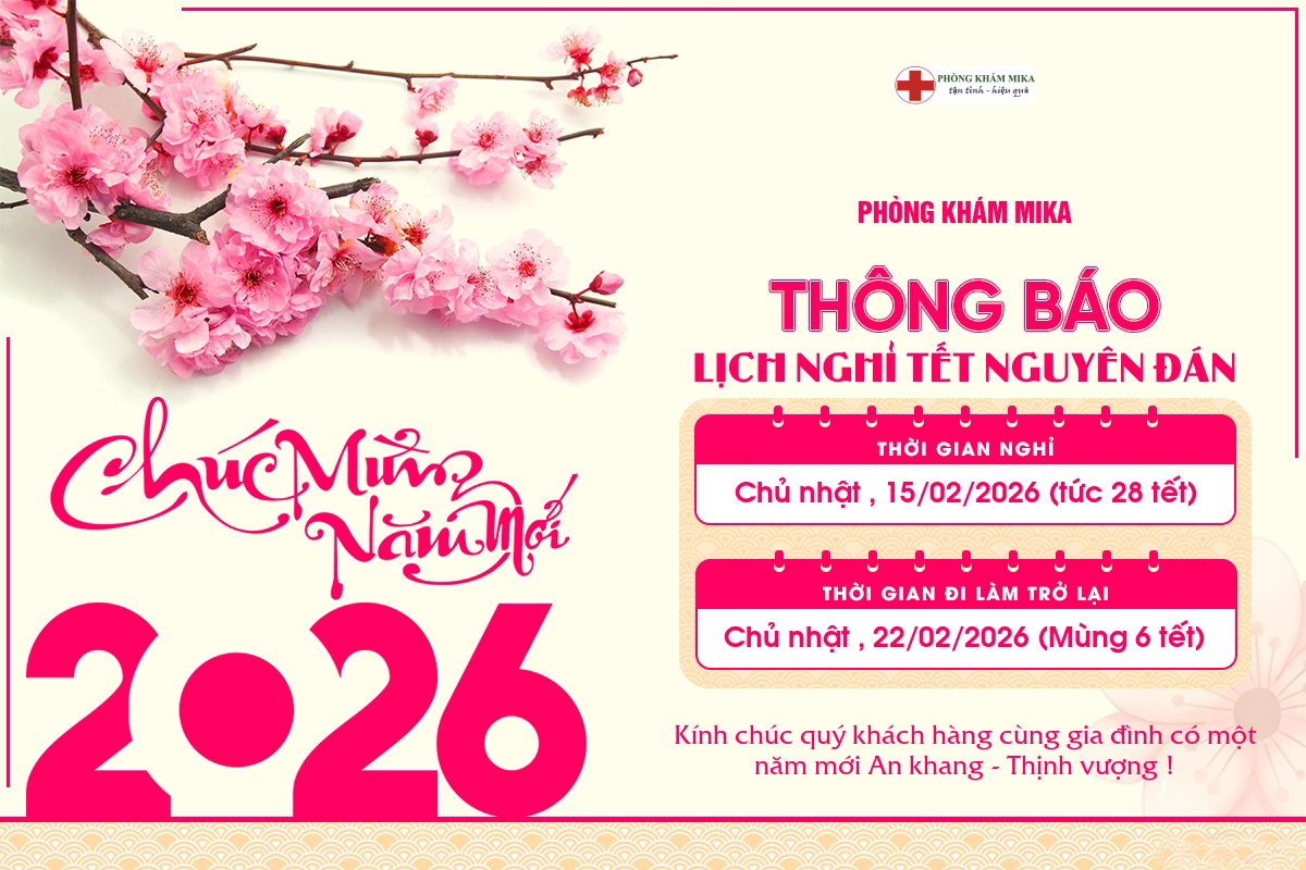 Thông báo nghỉ làm việc Kính gửi Quý khách hàng, Vì lý do chủ nhà cần mặt tiền để tổ chức giỗ, nên phòng khám Mika xin phép được nghỉ làm 01 ngày thứ 3 (27/05/2025) Rất mong Quý khách hàng cảm thông cho Phòng khám vì sự bất tiện này. Bác sĩ Cương....